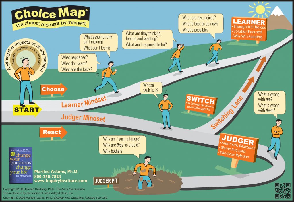 Μπροστά σε ένα θέμα έχεις την επιλογή να πάρεις είτε τον δρόμο του Επικριτή είτε του Εκπαιδευόμενου. Μπορεί αρχικά να ακολουθήσεις τον δρόμο του Επικριτή, να συνειδητοποιήσεις ότι θέλεις να γυρίσεις στον δρόμο του Εκπαιδευόμενου και να τερματίσεις ως Εκπαιδευόμενος. Σε μια διαμάχη δυο Επικριτών εκείνος που αλλάζει πρώτος και μπαίνει στη θέση του Εκπαιδευόμενου, φέρνει και τη λύση.