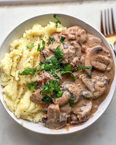 Μανιτάρια Στρογκανόφ με πουρέ πατάτες